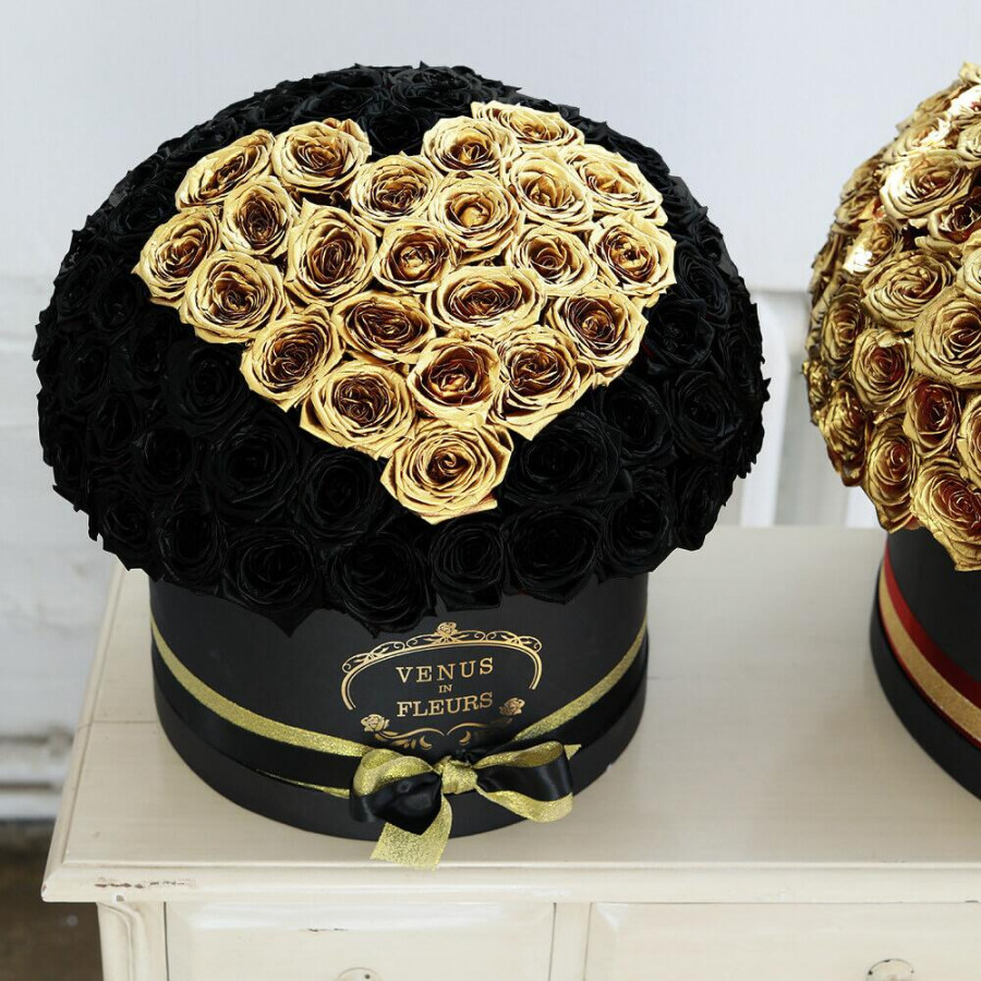 Букет из 201 черной и золотой розы в коробке в Сарапуле