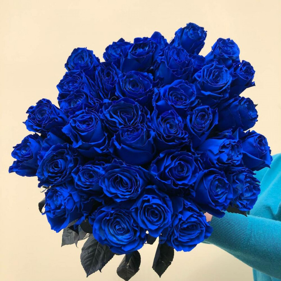 Монобукет из 31 синей розы «Ультрамарин» фото 2