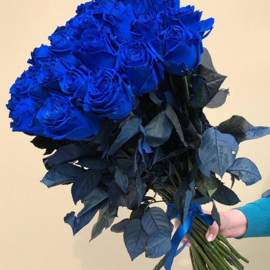 Монобукет из 31 синей розы «Ультрамарин» фото 4
