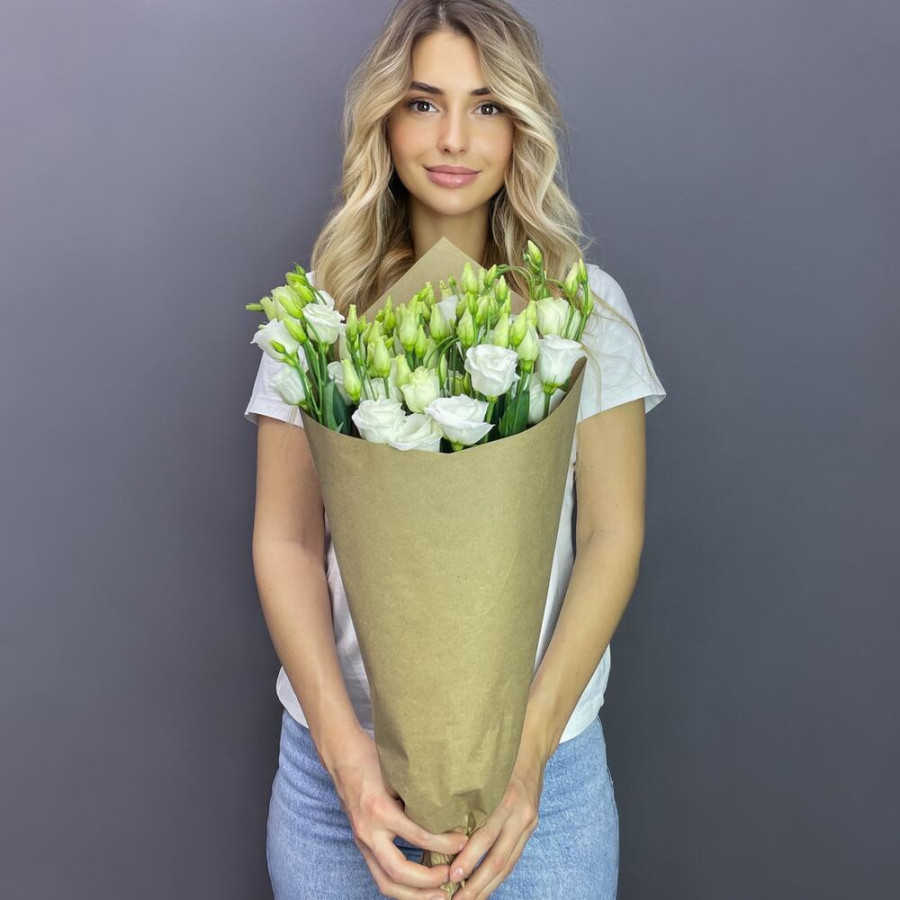 Этот букет белоснежной эустомы сорта ROSI WHITE станет отличным символом стойкости и свежести цветов. Он идеально подходит для того, чтобы выразить свои нежные или романтичные чувства.