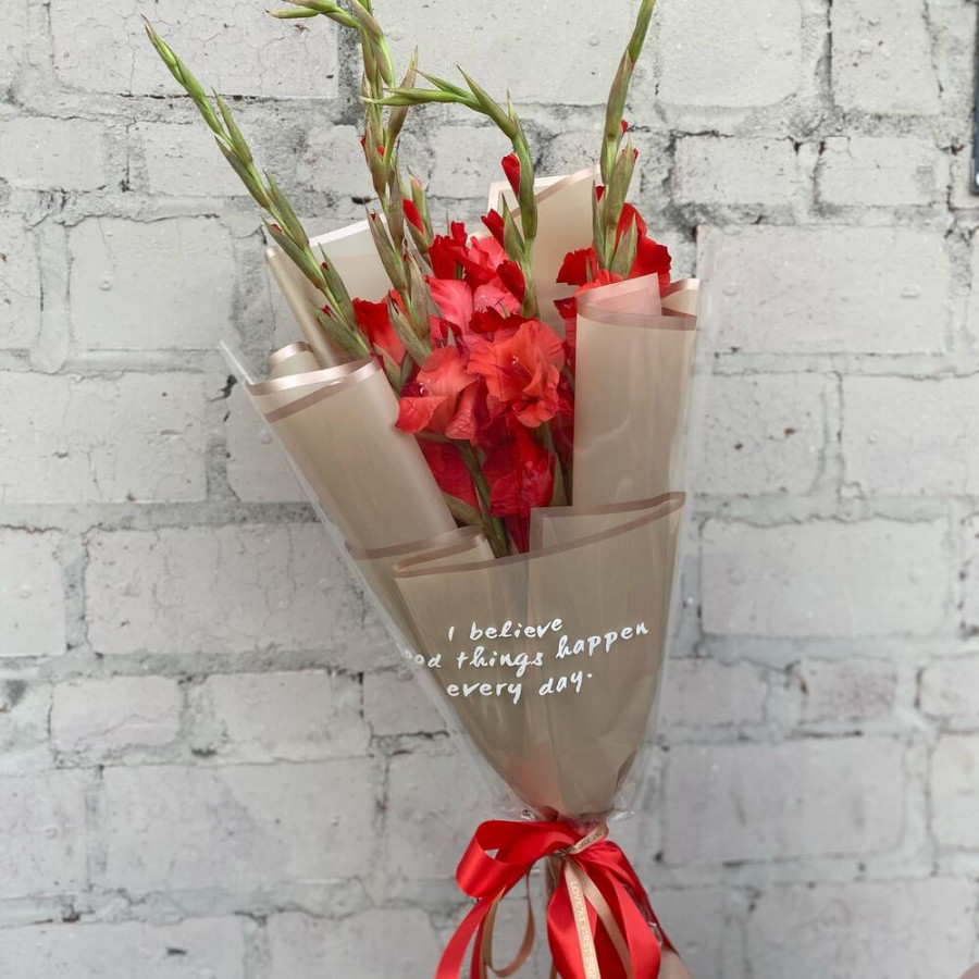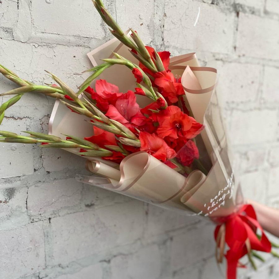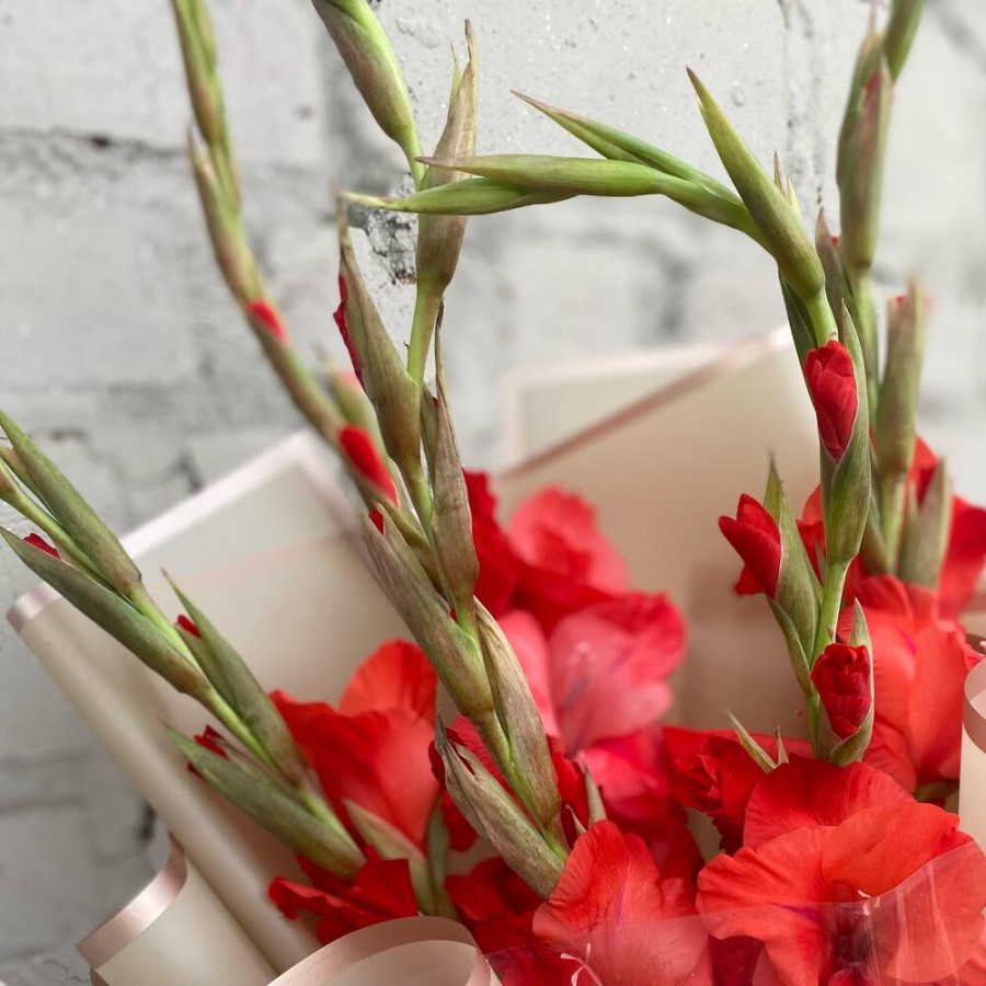 Букет из 5 красных гладиолусов фото 4