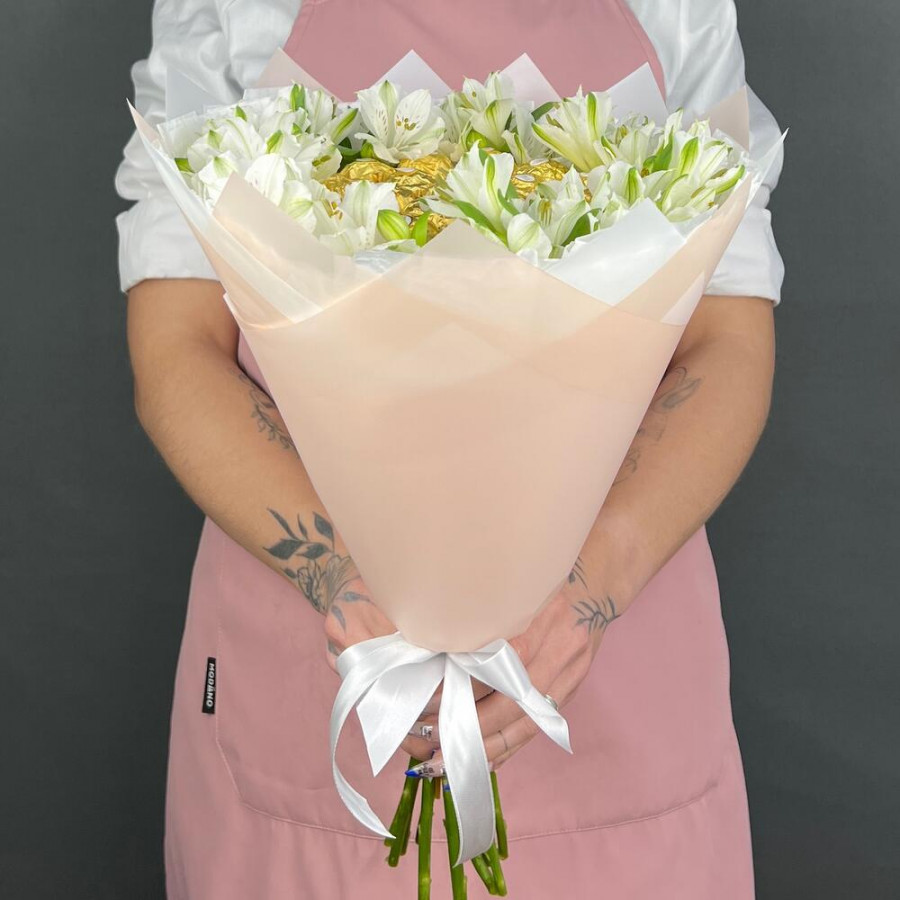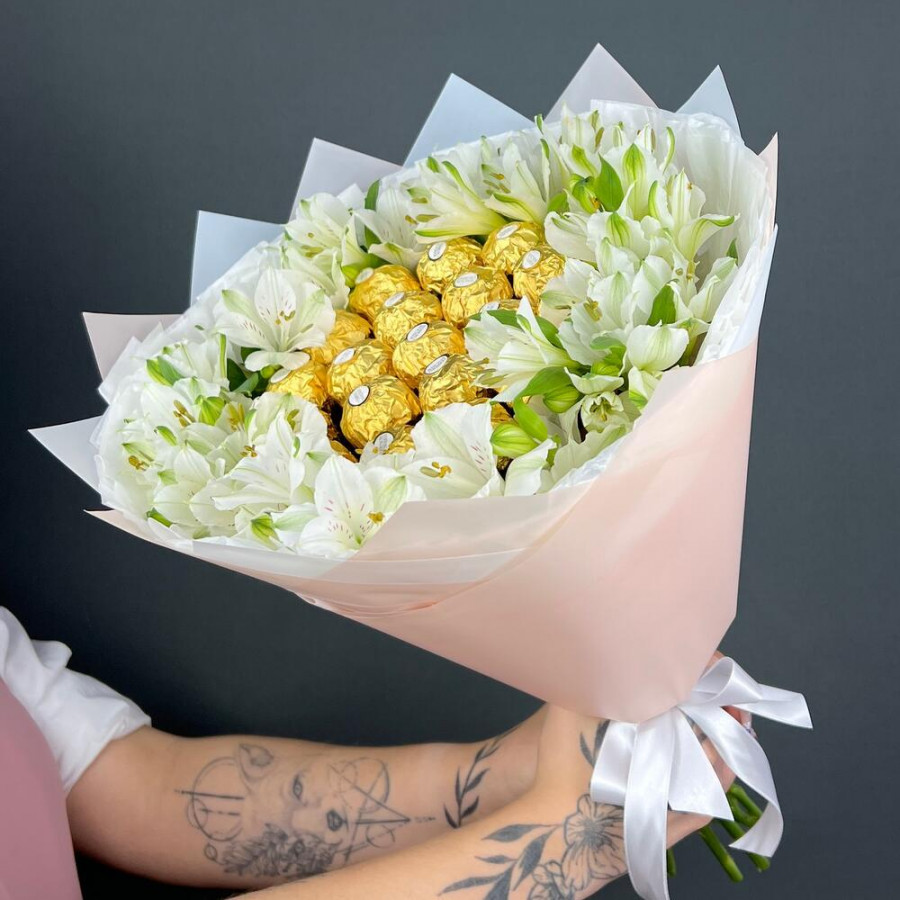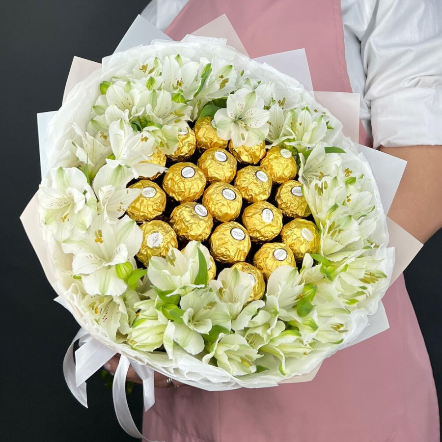 Букет из конфет Ferrero Rocher и и альстромерии в Сарапуле