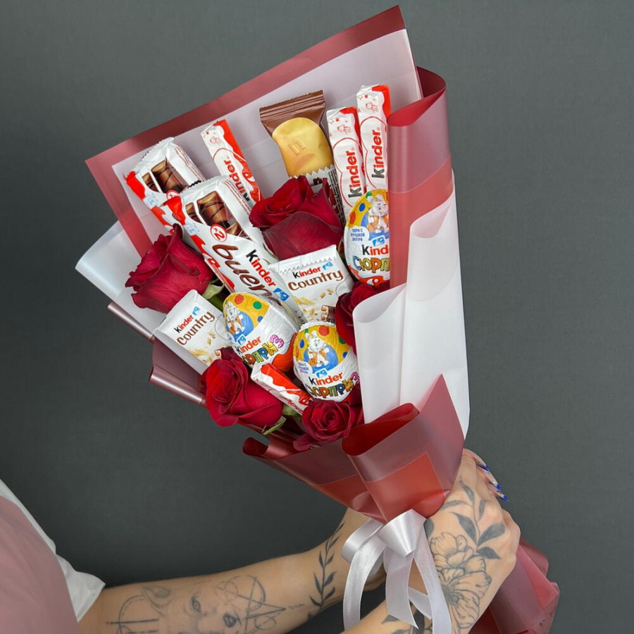 Букет из конфет KINDER и красные розы