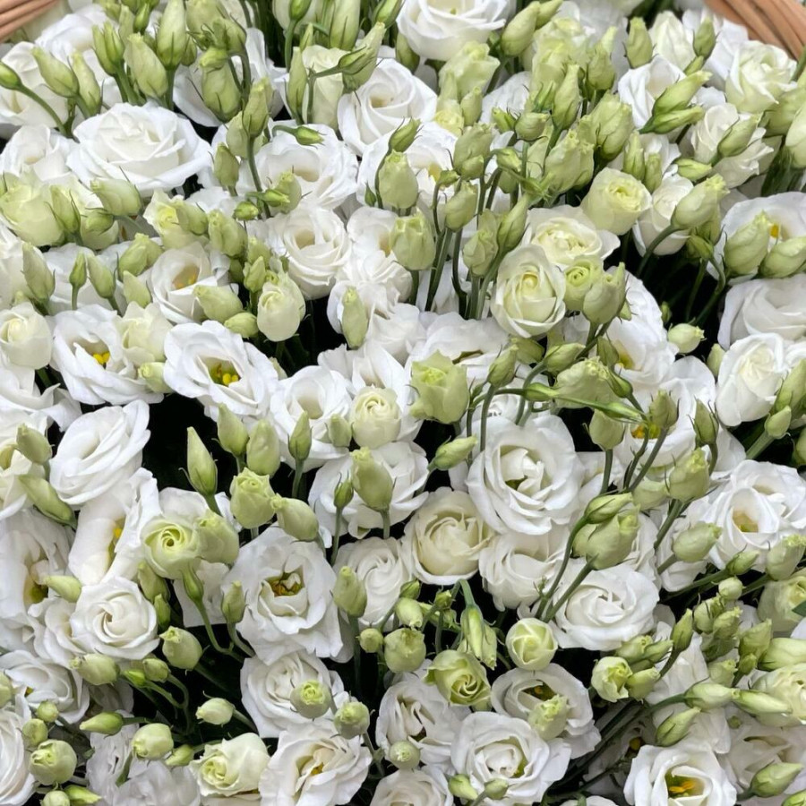 Корзина из 101 белой эустомы