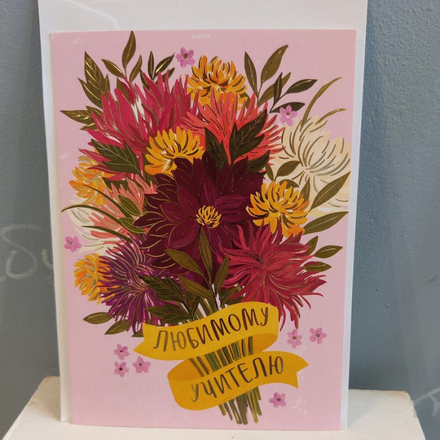 На фото открытка «учителю». В составе: . Все цветы свежие и ароматные, букет красиво оформлен и отлично подходит для подарка. Доступна доставка цветов или самовывоз.