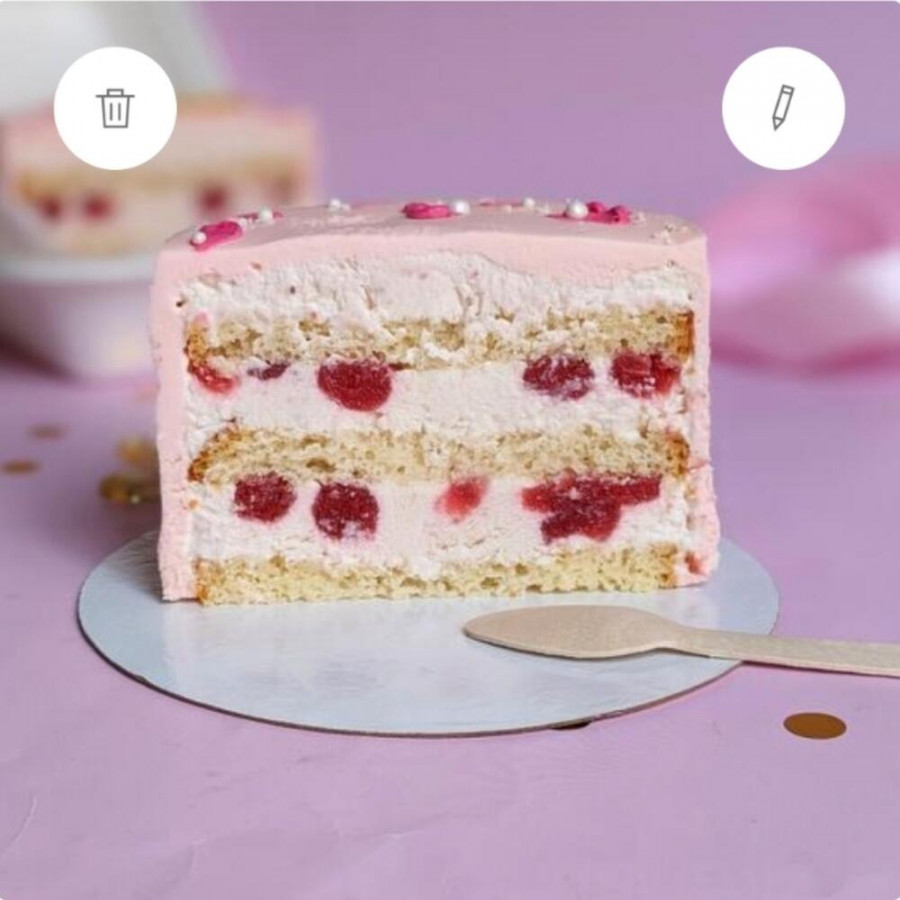 Клубничное облако: мука в/с, яйцо куриное, масло сливочное 82 %, крахмал кукурузный, сахар, сливки 33%, творожный сыр, маскарпоне, пектин, клубничное пюре.